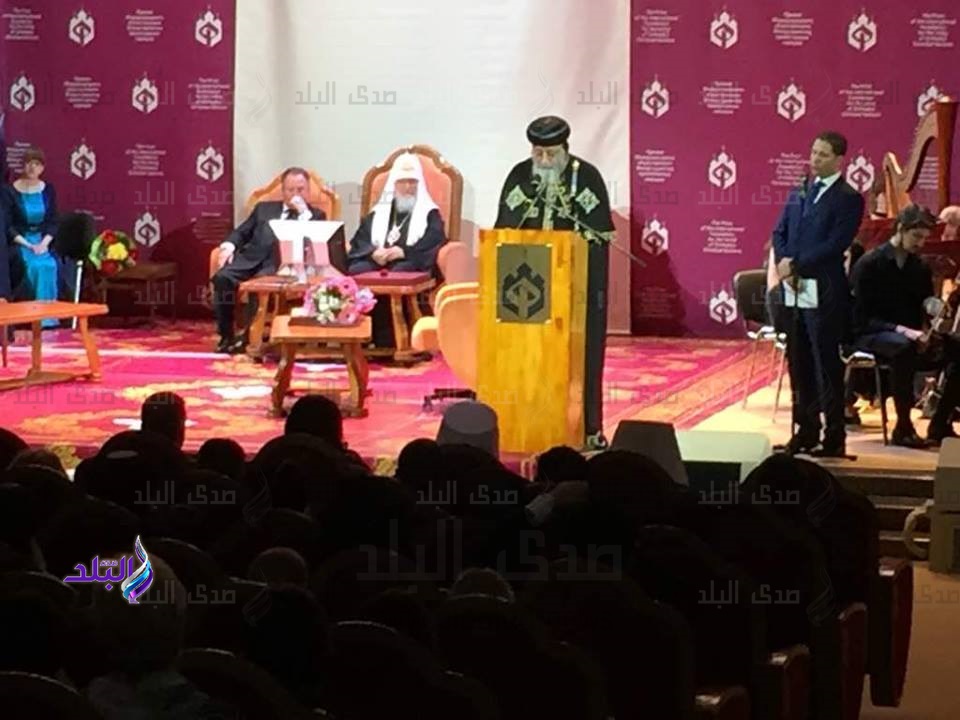وقدم البابا تواضروس الشكر إلى المسئولين بروسيا والكنيسة الروسية لحفاوة استقباله عقب وصوله موسكو.