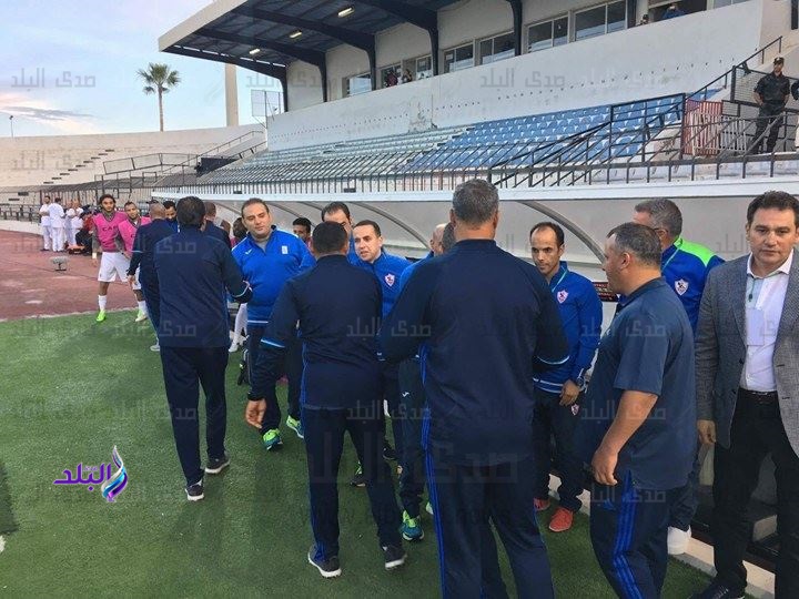 طلعت يوسف يصافح الجهاز الفني للزمالك.. صور