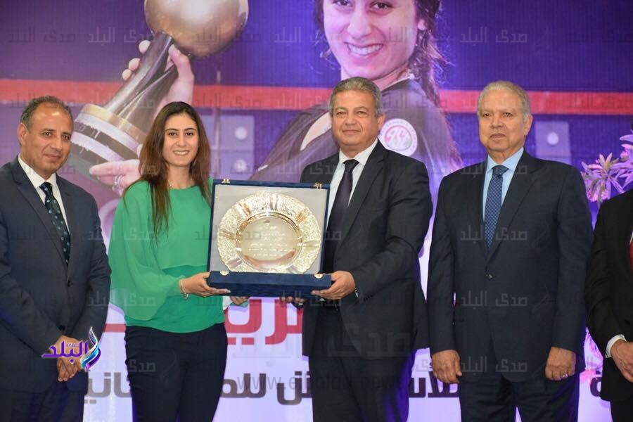 وزير الرياضة يشهد تكريم بطلة الأسكواش نور الشربيني .. صور