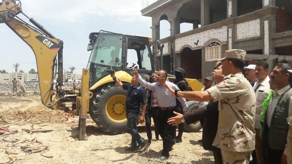وتم ازالة التعدى على مساحة 5 أفدنة عبارة عن منازل مقامة على أراضى الدولة ومزارع سمكية، في اطار حملة استرداد اراضي الدولة.
