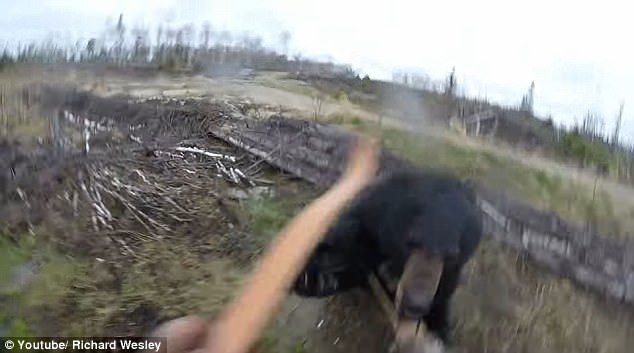 ويظهر فيديو، نشرته صحيفة "الديلي ميل" البريطانية، انقضاض دب أسود بشراسة على " ريتشارد" خلال تصويبه أحد الاسهم عليه، ليطرحه ارضًا ولحسن الحظ تمكن الصياد من مقاومة الدب والفرار منه لينجوا بحياته من بين أنياب الدوب.