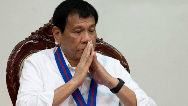 حاول الرئيس الفلبيني رودريجو دوتيرتي طمأنة الجنود الذين ربما يواجهون اتهامات بارتكاب انتهاكات بموجب قانون الأحكام العرفية وقال مازحا إنه إذا قام أحدهم باغتصاب ثلاث سيدات فإنه سيعلن هو شخصيا مسؤوليته عن ذلك.