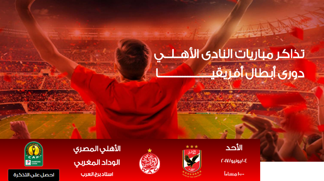 أكد وليد مهدي، مدير إدارة المباريات بالنادي الأهلي، إن باب الحجز لتذاكر مباراة الفريق الأول للكرة أمام الوداد المغربي المقرر لها يوم الأحد المقبل، ضمن الجولة الثالثة بدور المجموعات من بطولة دوري أبطال إفريقيا، سيلغق في العاشرة مساء اليوم الثلاثاء.