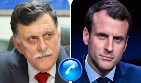 جاء ذلك خلال اتصال هاتفي تلقاه السراج، اليوم الثلاثاء، من الرئيس الفرنسي إيمانويل ماركون، تناول خلاله الطرفان آخر مستجدات الوضع في ليبيا، إضافة إلى العلاقات الثنائية والمسائل ذات الاهتمام المشترك .