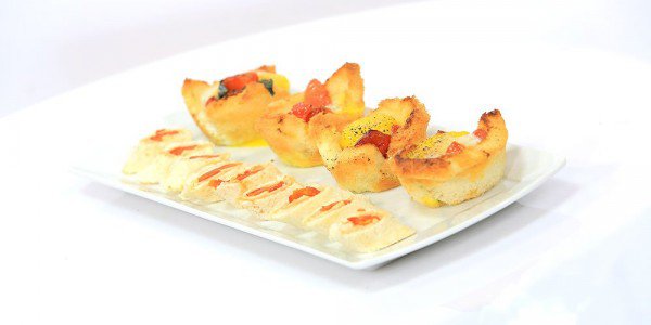 * إزالة حواف التوست وادهنيه بالزبدة السايحة والثوم المفروم ثم ضعيه فى قوالب الكب كيك فى الفرن لمدة 10 دقائق