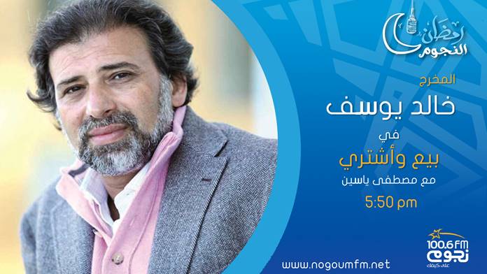 يستضيف الكاتب الصحفى مصطفى ياسين فى برنامجه "بيع واشترى"، المخرج السينمائى وعضو مجلس النواب خالد يوسف، وذلك فى الساعة 5:50 مساء، على إذاعة "نجوم إف.إم"، ويتحدث المخرج عن أعماله السينمائية التى يحضر لها حاليا و أول أجر حصل عليه من عمله كمخرج.