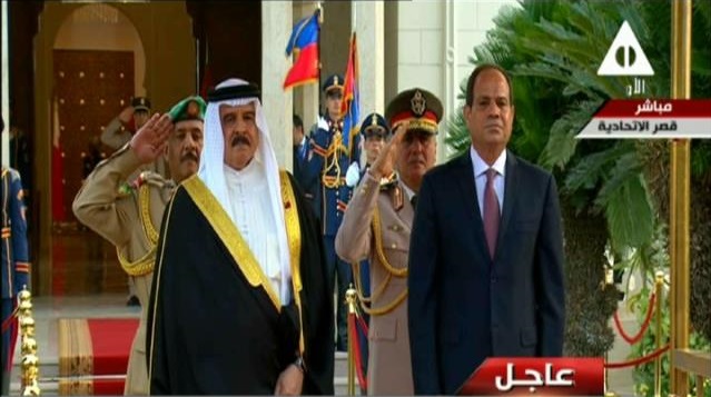 عزفت الفرقة الموسيقية العسكرية ، بقصر الاتحادية السلامين الوطنيين لمصر والبحرين ، وذلك عقب وصول الشيح حمد بن عيسي العاهل البحريني إلى القصر بصحبة الرئيس عبدالفتاح السيسي.