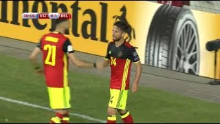 بدأ اللقاء بضغط هجومى مكثف من جانب لاعبى المنتخب البلجيكي على مرمى منتخب استونيا ونجح درايس ميرتينز فى الدقيقة 31 من تسجيل الهدف الاول لمنتخب بلجيكا إثر تلقيه تمريرة عرضية سددها بقوة لتسكن شباك حارس المرمى.