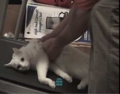 ويظهر الفيديو وضع رجل قطًا على المشاية الرياضية ليحركه قليلًا للتخلص من جلوسه وكسله المستمر، ولكن القط لم ينفذ رغبة صاحبه لكسله الشديد لفعل هذا الأمر.