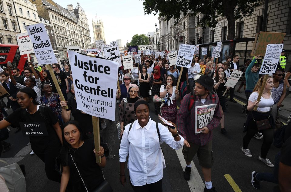 وبحسب صحيفة "اندبندنت"، انطلقت مسيرة من مقر وزارة الداخلية البريطانية بلندن إلى مقر رئاسة الوزراء، هتف المشاركون فيها "العدالة لجرينفل" و"ماي يجب أن ترحل"، بينما انطلقت مسيرتان أخريان من كنزنجتون وتشيلسي إلى محيط البرج المحترق.