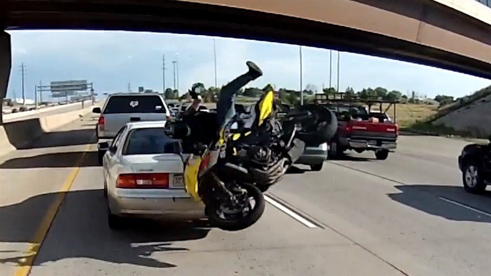 نشر موقع "لايف ليك" المعني بمقاطع الفيديو الصادمة والنادرة مثطع فيديو صادم، يظهر سائق دراجة نارية اصطدم بسيارة وجهًا لوجه على سرعة كبيرة بأحد الطرق.