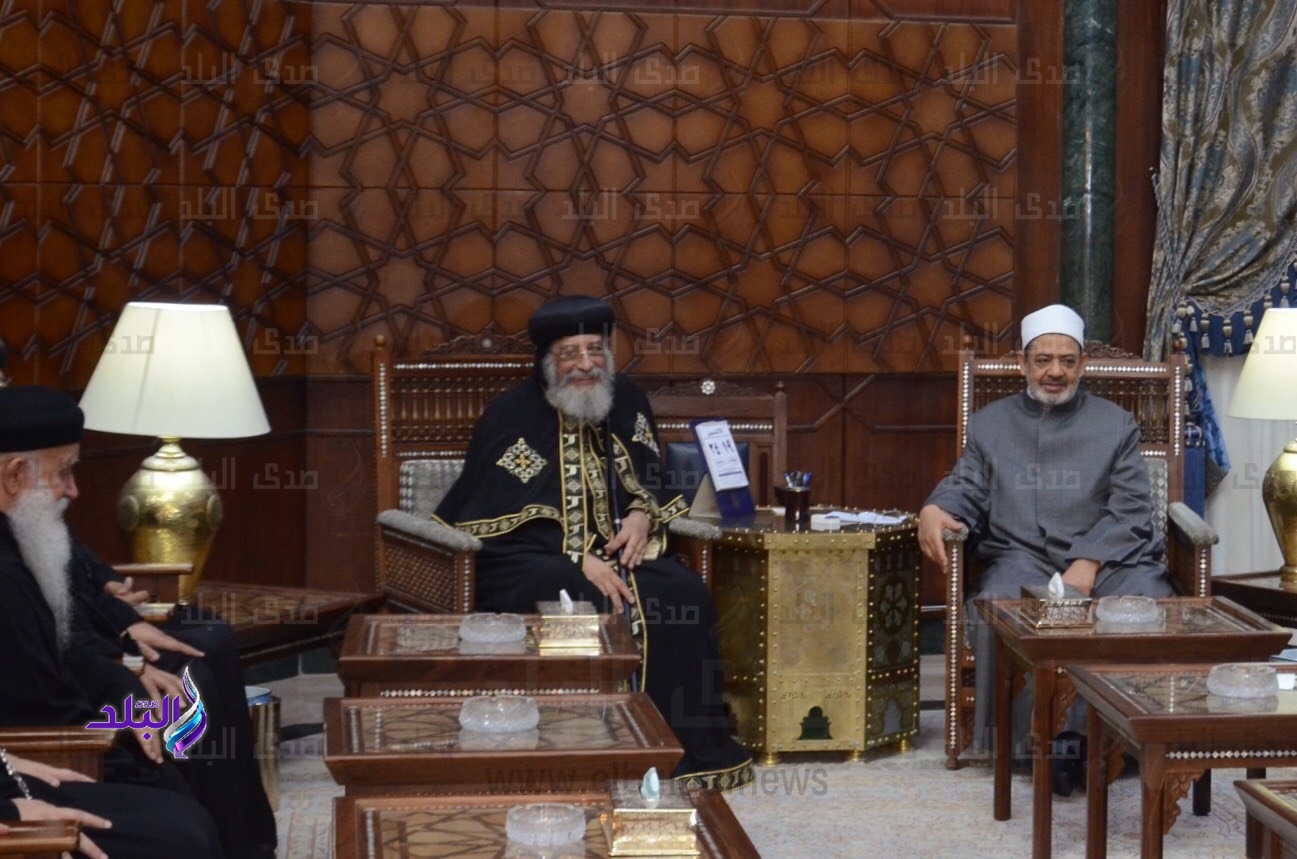 قدَّم الإمام الأكبر الشكر لقداسة البابا تواضروس على التهنئة بمناسبة حلول عيد الفطر، مؤكدًا أن زيارة قداسته اليوم تعد تجسيدًا للعلاقات الطيبة التي تسود بين الأزهر الشريف والكاتدرائية والتي لا يمكن لأي أحد كائنا من كان أن ينال منها أو يعكر صفوها، كما تعد تعبيرًا عن المحبة والوحدة التي تجمع عنصري الأمة والتي هي أكبر من كل محاولات شق الصف المصري، داعيا الله -عز وجل- أن يعيد مثل هذه الأيام المباركة على مصرنا الغالية بمزيدٍ من التقدم والرخاء.
