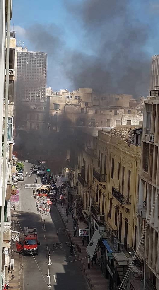 بالصور..السيطرة على حريق أعلى عقار وسط الإسكندرية