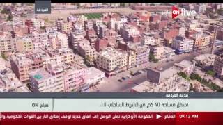 عرض برنامج "صباح أون"، المذاع على فضائية "أون لايف"، اليوم، الخميس، لقطات جوية مصورة عبر "كاميرا دورن" ترصد إطلالة علوية على مدينة الغردقة العاصمة الإدارية لمحافظة البحر الأحمر.