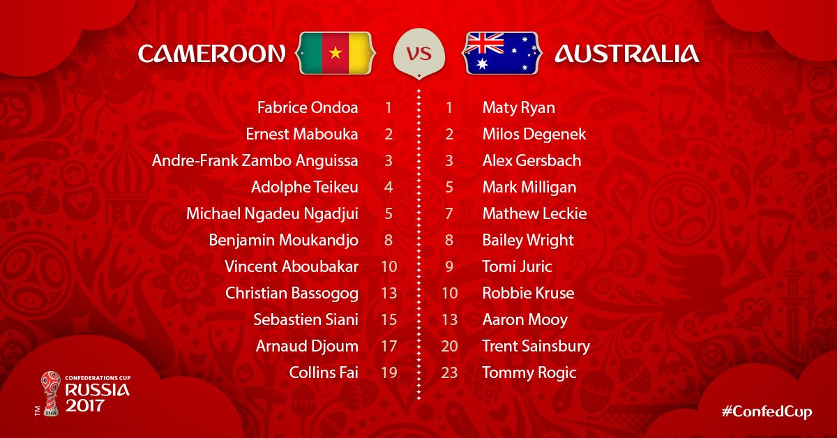 تعرف على تشكيلة الكاميرون وأستراليا قبل لقائهما فى كأس القارات