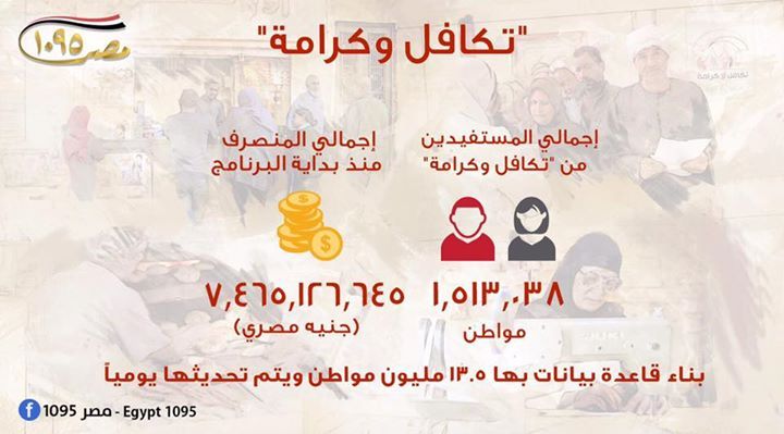 وأكدت الصفحة أن الشعب كله كان البطل في تحقيق هذا الإنجاز، حيث بلغ إجمالي المستفيدين من تكافل وكرامة ١.٥١٣.٠٣٨ مواطن وإجمالي المنصرف منذ بداية البرنامج ٧.٤٦٥.١٢٦.٦٤٥ جنيه مصري وتم بناء قاعدة بيانات بها ١٣.٥مليون مواطن ويتم تحديثها يوميا.