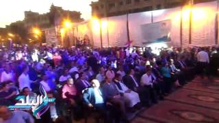 وبدأت الإحتفالية بالسلام الوطني، وقدم المطرب احمد جمال والمطرب محمد شاهين عددا من الاغاني الوطنية وذلك وسط تواجد المئات من المواطنين من مختلف المحافظات.