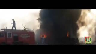 وسرعان ما اندفع عشرات الأشخاص من إحدى القرى يحملون أوان لجمع النفط المتسرب، بعدها بدقائق انفجرت الشاحنة واندلع حريق هائل تصاعد دخانه الأسود عاليا في السماء.