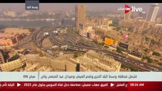 عرض برنامج "صباح أون" المذاع على فضائية "أون لايف"، صباح اليوم، الاثنين، مجموعة من اللقطات الجوية المصورة عن طريق كاميرا "درون" الطائرة، ترصد الحالة المرورية بشوارع القاهرة والجيزة.