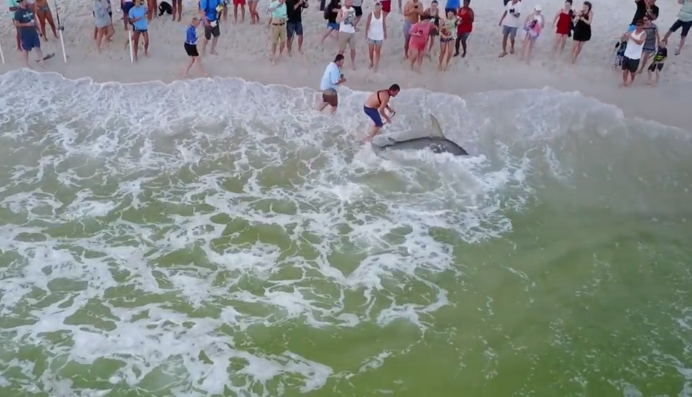 ولحين حظ أن مصور الفيديو "كورتيس ويليام" رأى القرش بين الأمواج وهو على مسافة عدة أمتار من المصطافين، لينتله الحضور ويتمكنوا من القبض على القرش المفترس.