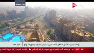 عرض برنامج "صباح أون" المذاع على فضائية "أون لايف"، صباح اليوم، الأحد، مجموعة من اللقطات الجوية المصورة عن طريق كاميرا "درون" الطائرة، ترصد الحالة المرورية بشوارع القاهرة والجيزة.