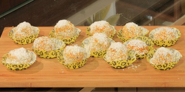 * يرفع و يشكل كرات متوسطة ثم يغلف فى جوز الهند المبشور