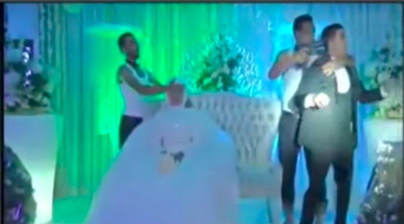 عرض الإعلامي معتز الدمرداش، لقطات مصورة لعملية سطو مسلح “تمثيلية” على عريس وعروسة في الكوشة داخل قاعة الزفاف، حيث تم تهديد العريس بالخطف أو ترك العروسة.