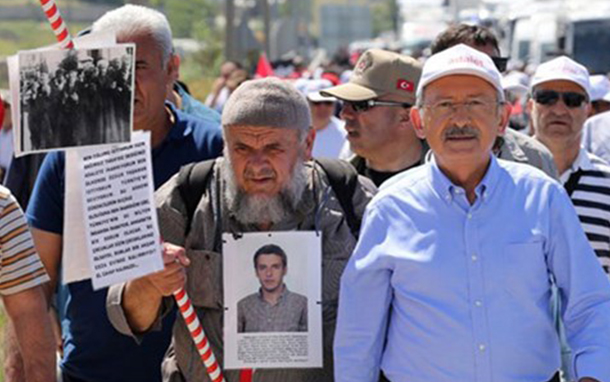 وأشارت صحيفة "حريت" التركية، إلى أن السلطات التركية اعتقلت المسن فيصل كيليتش البالغ من العمر 63 عامًا، وهو والد طالب في المدرسة الجوية اعتقلته السلطات التركية عقب محاولة الانقلاب، وذلك عقب مشاركته في مسيرة العدالة التي نظمتها أحزاب المعارضة ضد أردوغان.