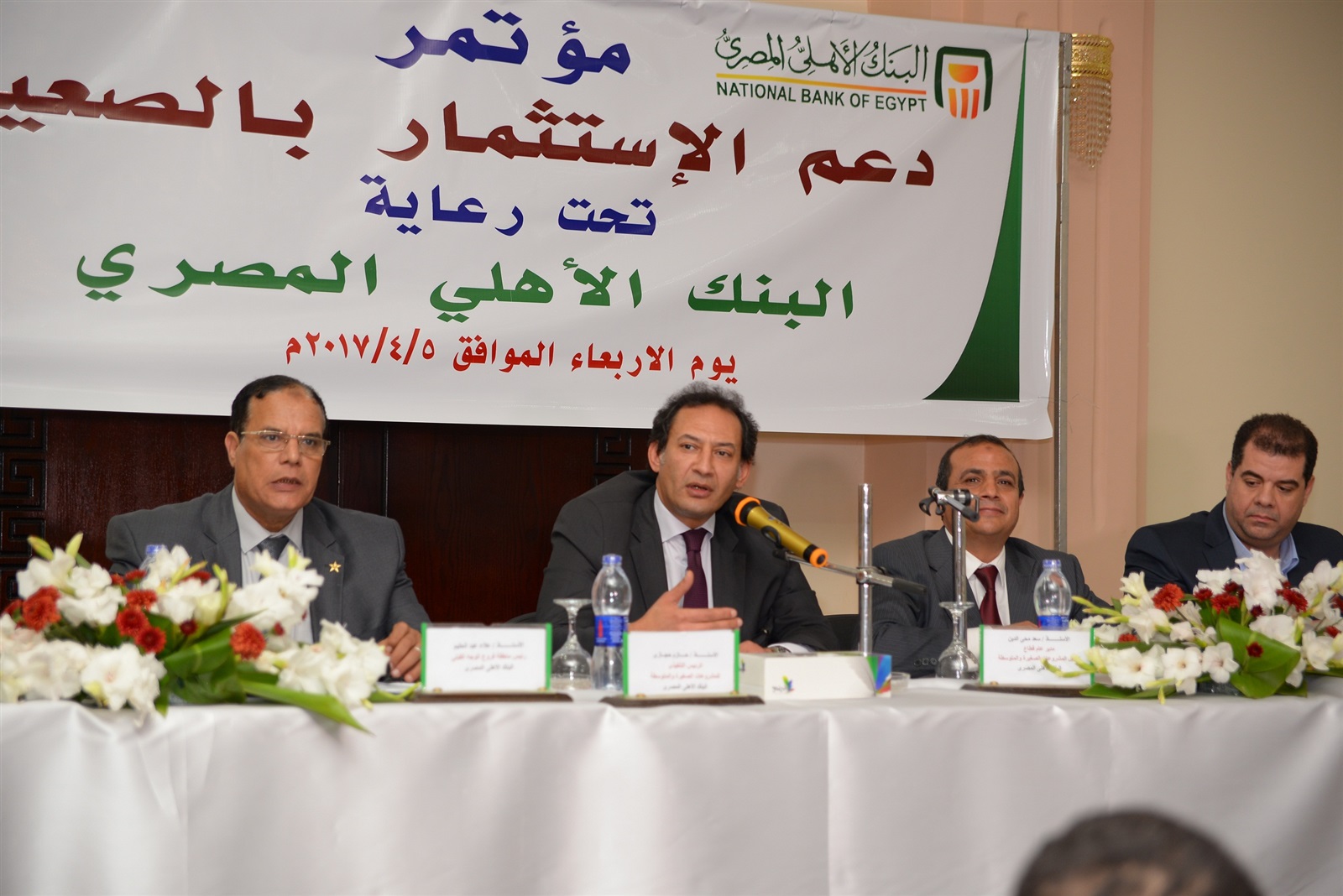 قام البنك بالتعاون مع جمعيات المستثمرين بالمدن الصناعية بمحافظات بنى سويف, اسيوط والمنيا بعقد سلسلة مؤتمرات بهدف دعم الاستثمار بمحافظات الصعيد حضرها رؤساء وأعضاء جمعيات المستثمرين وأصحاب المصانع بالمدن الصناعية المذكورة في اطار اهتمام البنك الأهلي المصري بدعم وتنمية محافظات الصعيد فى كافة مجالات النشاط الاقتصادى وبصفة خاصة النشاط الصناعي باعتبارها من المناطق الواعدة للاستثمار