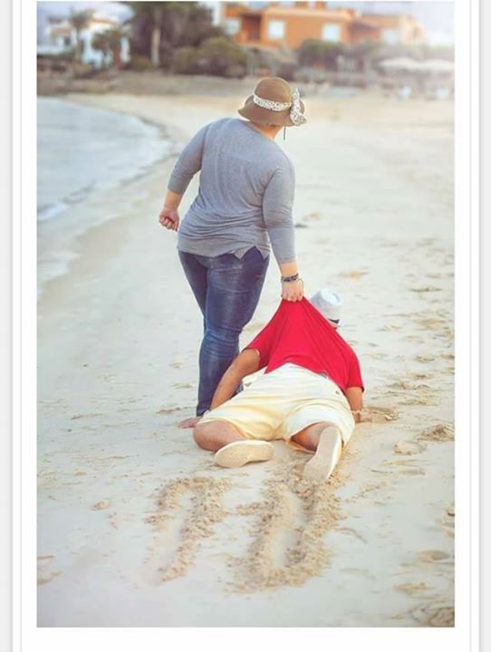 تداول مستخدمو الفيسبوك جلسة تصوير لرجل وزوجته بقضاء الأجازة علي إحدى الشواطئ ولكن بطريقة مختلفة، حيث تظهر الصور للزوجين انها سيدة مسيطرة علي زوجها وعلى انها الأقوى ويظهر الزوج ضعيف ومغلوب علي أمره.