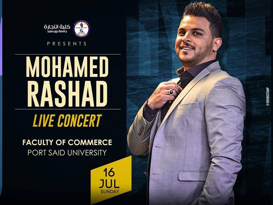يحيى المطرب الشاب محمد رشاد حفل جامعة بورسعيد كلية تجارة إنجليزى الأحد المقبل، ومن المقرر أن يقدم مجموعة من الأغانى المتنوعة.