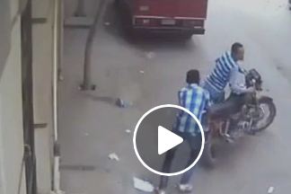 وأظهر مقطع الفيديو الذي التقطته كاميرا المراقبة الموضوعة أعلى المنزل الذي تمت سرقة الدراجة النارية من أمامه، تربص اللصين لها وانتظارهما لحظة خلو الشارع من المارة، ليستقلاها ويهربا قبل أن يراهما أحد.