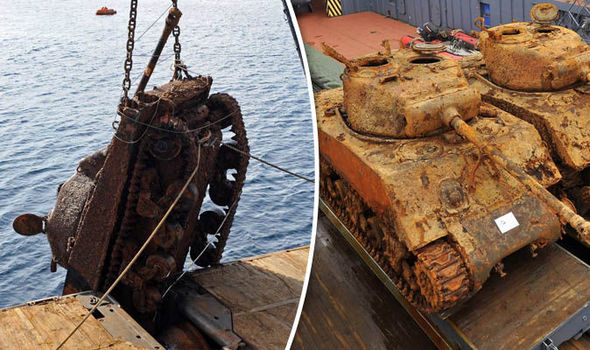 شاهد..استخراج دبابتين من البحر..غرقتا فى عام 1945