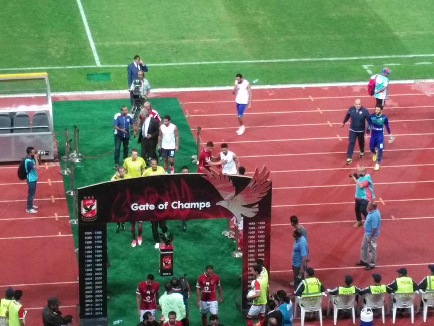 ساند ثنائي فريق كرة القدم الأول بنادي الزمالك أحمد رفعت وباسم مرسي مدافع الفريق الأول لكرة القدم بالنادي الأهلي سعد سمير وذلك أثناء خروج الفريقين من ملعب المباراة عقب انتهاء الشوط الأول.