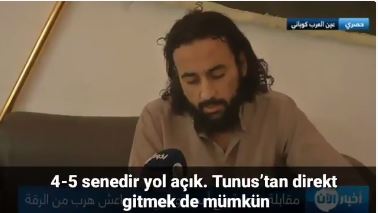 كشف تونسى ينتمين للحركة الإرهابية "داعش" فى سوريا أثناء لقاء مع قناة "الآن " بعد القبض عليه من قبل قوت النظام عن تلقيه دعم من دولة قطر وتركيا للتنقل من تونس إلى تركيا حيث تم تسهيل الإجراءات له فى تركيا لدخول سوريا.
