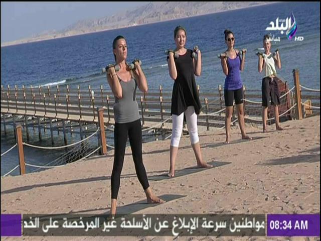 عرض برنامج "صباح البلد"، المُذاع على فضائية "صدى البلد"، صباح اليوم، الأربعاء، الفقرة الرياضية مع "فالنتينا"، من فندق "كليوباترا ريزورت" بشرم الشيخ، التي قدّمت خلالها التمارين الرياضية لتقوية عضلات الجسم باستخدام الأوزان.