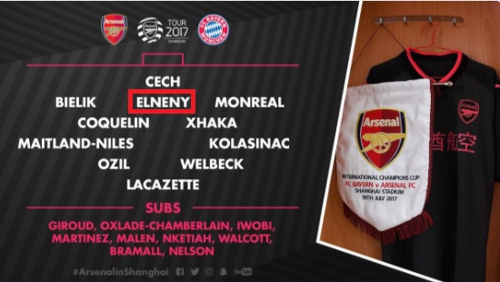 ودفع فينجر بلاعب الوسط المصري الدولي محمد النني ضمن التشكيلة الأساسية بديلا للمدافع بيير ميرتساكر والذي شعر بالإعياء أثناء إجرائه عمليات الاحماء قبل المباراة ولم يتمكن من المشاركة في اللقاء.