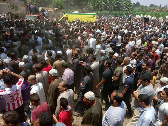 وأدى الأهالي صلاة الجنازة على الشهيد بالمسجد الكبير بالقرية وتم تشييع الجثمان الى مثواه الأخير بمقابر الأسرة وسط هتافات منددة بالإرهاب ومنها "لا إله الا الله الشهيد حبيب الله".
