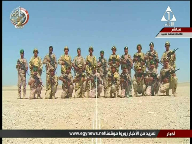 شهد الرئيس عبد الفتاح السيسي والوفود العربية المشاركة في افتتاح قاعدة محمد نجيب العسكرية، واحتفالات تخرج طلاب الكيات العسكرية، اليوم، السبت، فيلمًا تسجيليًا عن التدريبات العسكرية المصرية المشتركة مع الدول العربية الشقيقة، أبرزها "مع دول السعودية، والإمارات، والأردن".