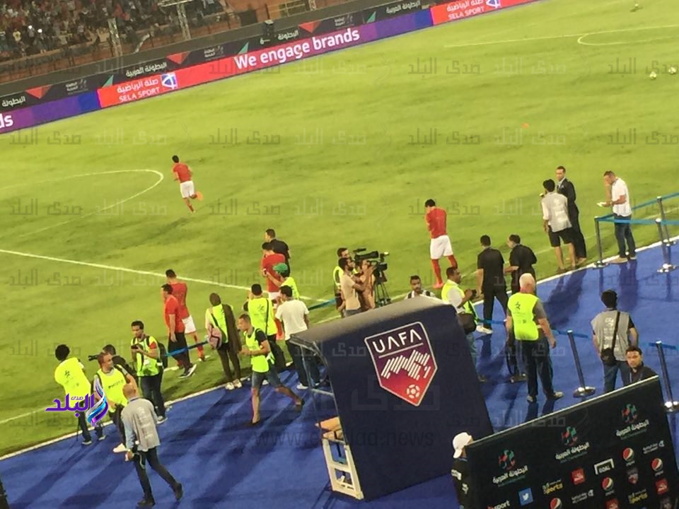 بدأ لاعبو فريق الكرة الأول بالنادي الأهلي عمليات الإحماء قبل مباراة الأهلي والفيصلي الاردني في افتتاحية البطولة العربية للأندية.