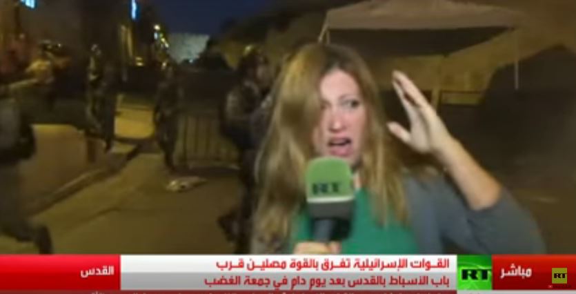 تعرّضت مراسلة قناة "روسيا اليوم" في القدس داليا النمري لاعتداء من قبل جنود إسرائيليين عند باب الأسباط، خلال تغطيتها للمناوشات بين الجنود والمصلين الفلسطينيين، وبثت القناة مقطع فيديو يسجل لحظة الاعتداء.