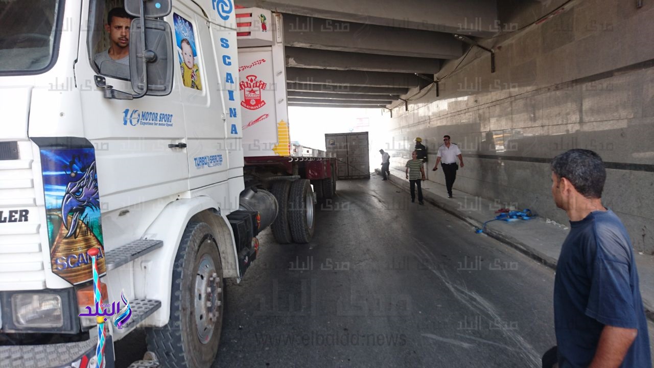 انقلاب "كونتينر" من أعلى سيارة نقل داخل نفق زهراء المعادي.. صور