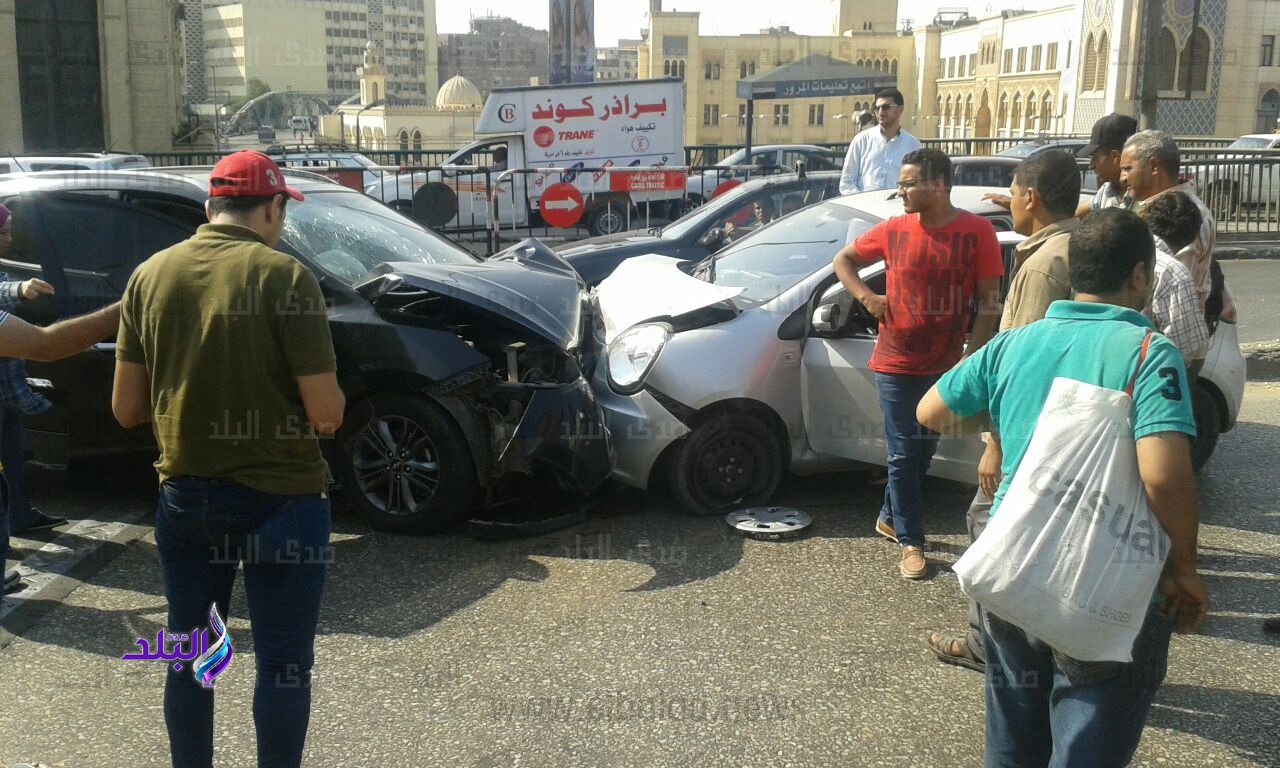 إصابة شخصين فى تصادم سيارتين أعلى كوبرى أكتوبر