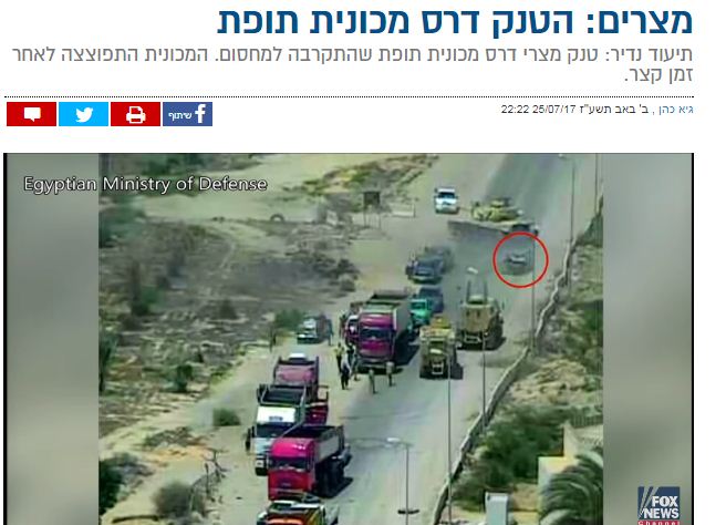 اهتمت وسائل الإعلام الإسرائيلية، اليوم الثلاثاء، بمقطع الفيديو الخاص بقيام جندي يقود دبابة بدهس سيارة مفخخة يقودها إرهابيون ليمنع ذلك وفاة العشرات من قوات الأمن والمدنيين.