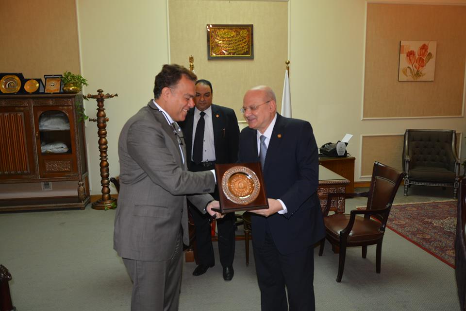 رئيس جامعة الزقازيق يهدي وزير النقل درع الجامعة .. صور