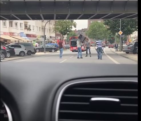ونقلت مجلة "دير شبيجل" عن ألماني يدعى زونكي فيبر، شارك بمطارة الفاعل: "كرر المطاردون الآخرون الطلب منه، وباللغة العربية، بأن يلقي السكين أرضًا"، وأضاف زونكي أنه "في سياق المطاردة اقترب مني مهددًا، مما حدا بالمطاردين الأخرين للتجمهر حولي لحمايتي".