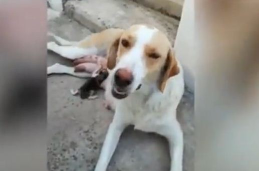 في مشهد يصف الرحمة والرأفة أرضعت كلبة قطة رضيعة جائعة بالرغم من إنجابها عدت جراوي صغار، إلا أنها لم تمانع من إرضاع قطة كانت تموت جوعًا لبعد أمها عنها، وعدم قدرتها على إيجاد من يرضعها لتطوع الكلبة وتحضنها لارضاعها.