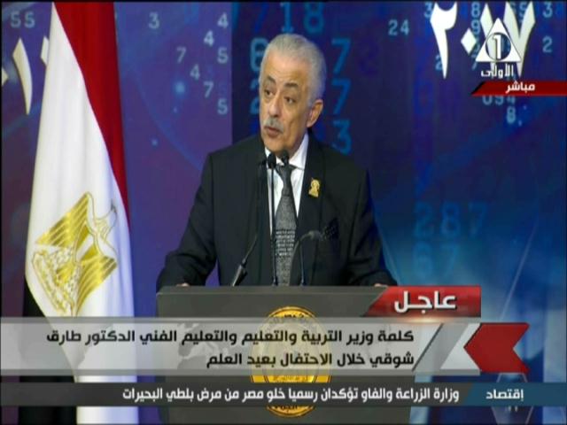 وقال "شوقي" خلال كلمته في عيد العلم بحضور الرئيس السيسي، اليوم الأحد، إن أهمية هذا الاحتفال أنه يأتي في وقت نتطلع فيه لتقديم أفضل مستوى من التعليم قبل الجامعي لجميع الطلاب في كافة أرجاء الوطن وبناء نظام تعليمي جديد في ضوء الخطط والأهداف التي التزمنا بها أمام المجتمع والقيادة السياسية.