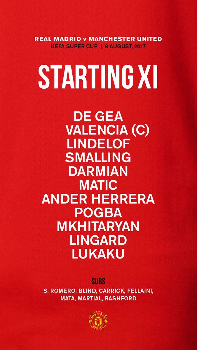 يواجه فريق مانشستر يونايتد الإنجليزي، ريال مدريد الإسباني بعد قليل على ملعب فيليب ارينا بمقدونيا وذلك في إطار المنافسة على لقب بطولة السوبر الأوروبي.