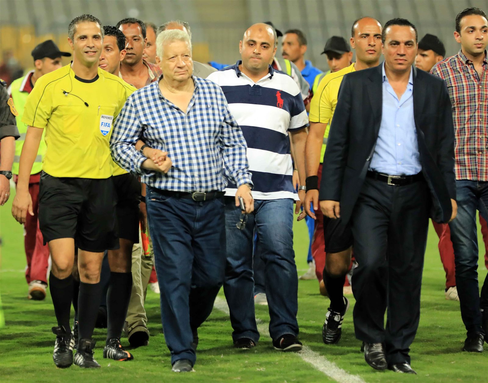 رافق المستشار مرتضى منصور رئيس نادى الزمالك الحكم محمود عاشور حكم مباراة المصرى فى كأس مصر إلى خارج ملعب استاد برج العرب في اللقاء الذى أقيم فى نصف نهائي كأس مصر.